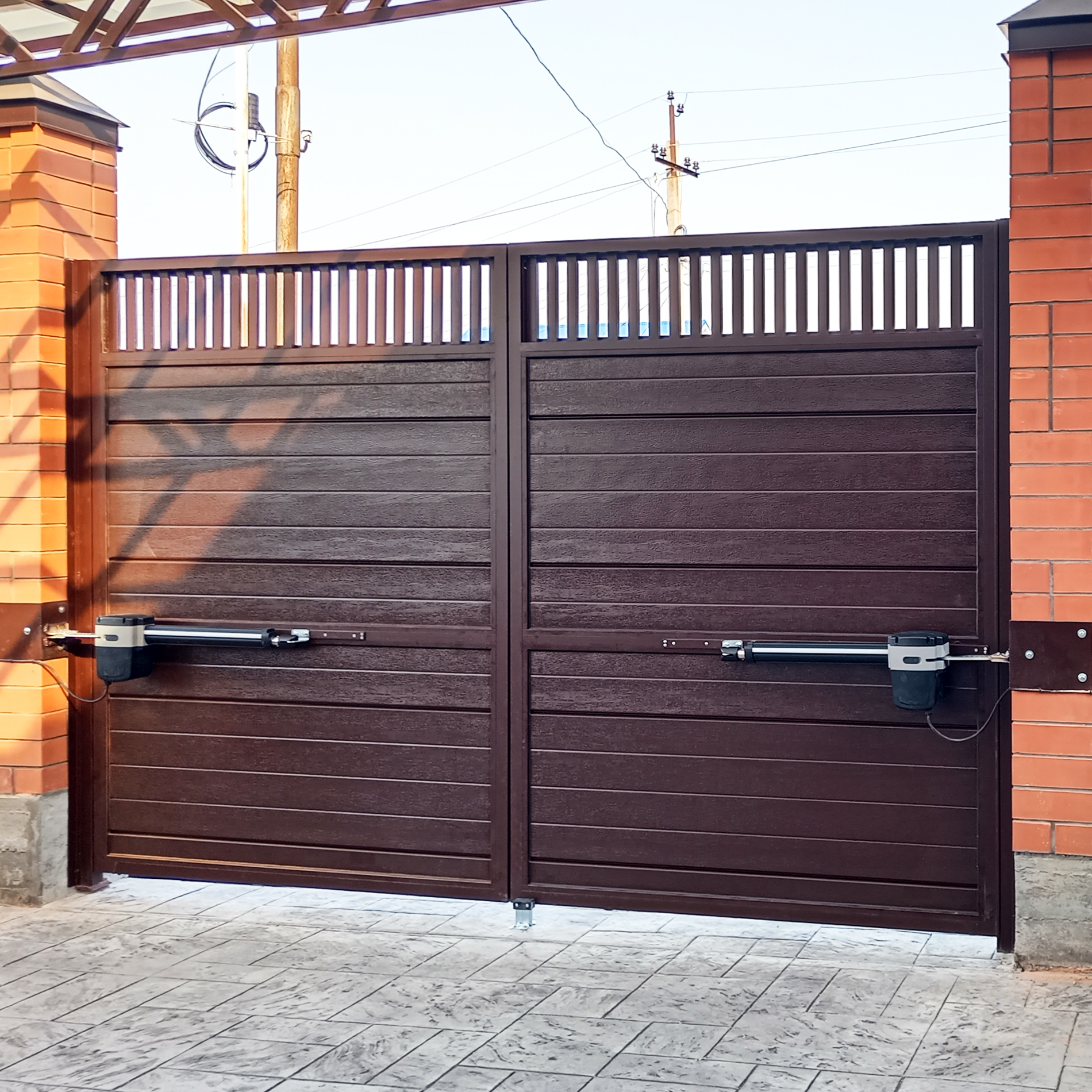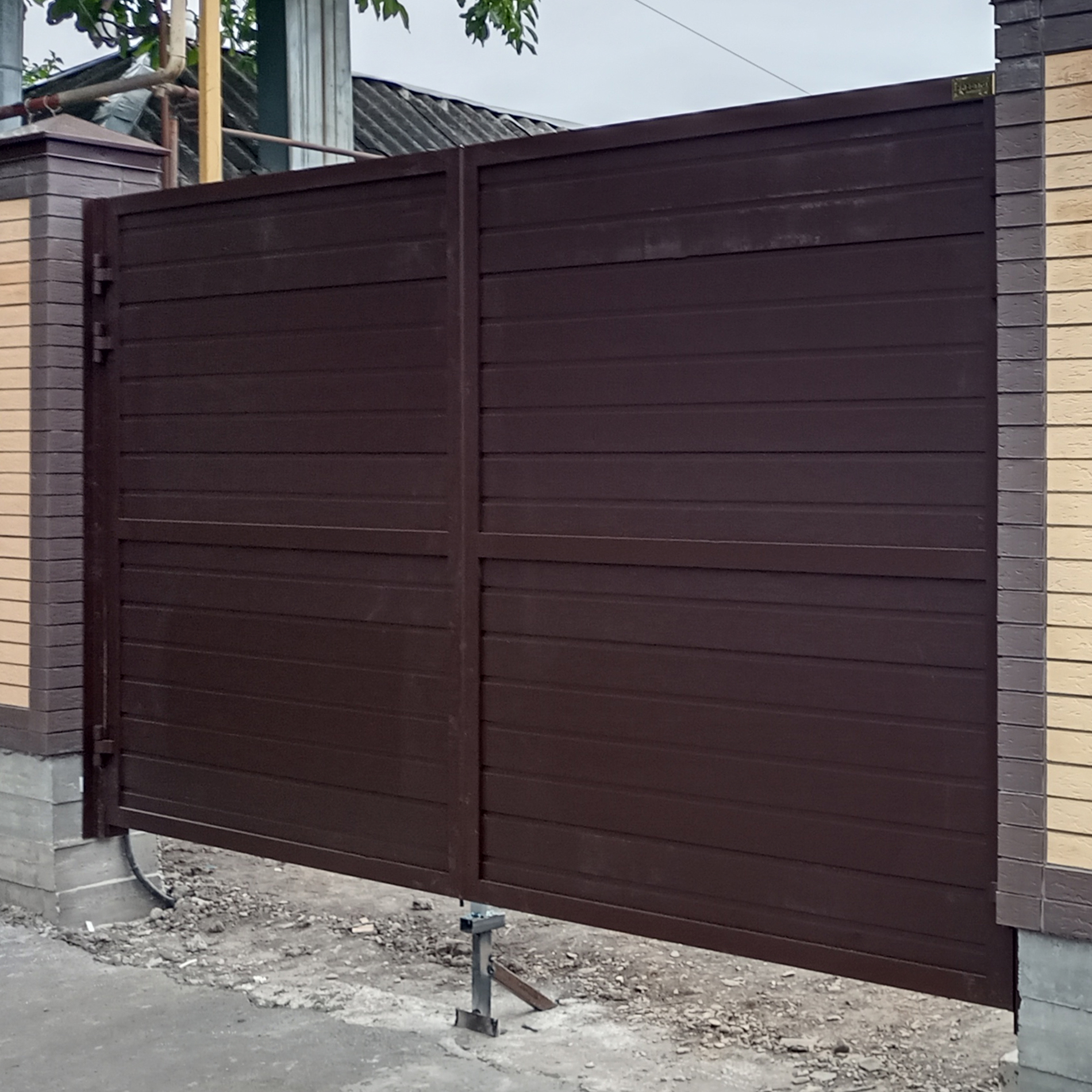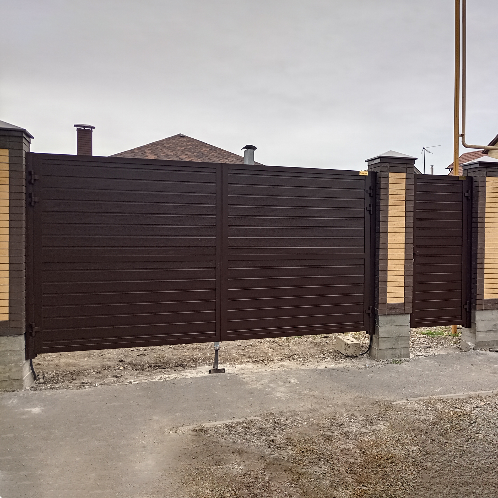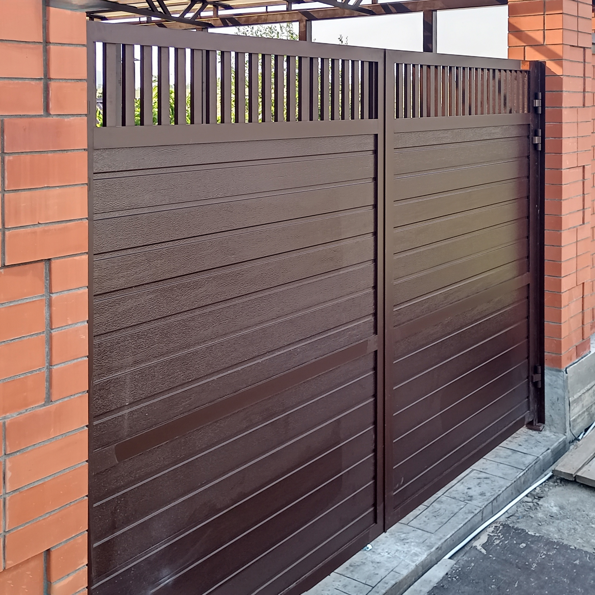 Въездные ворота с наполнителем из профлиста под ключ