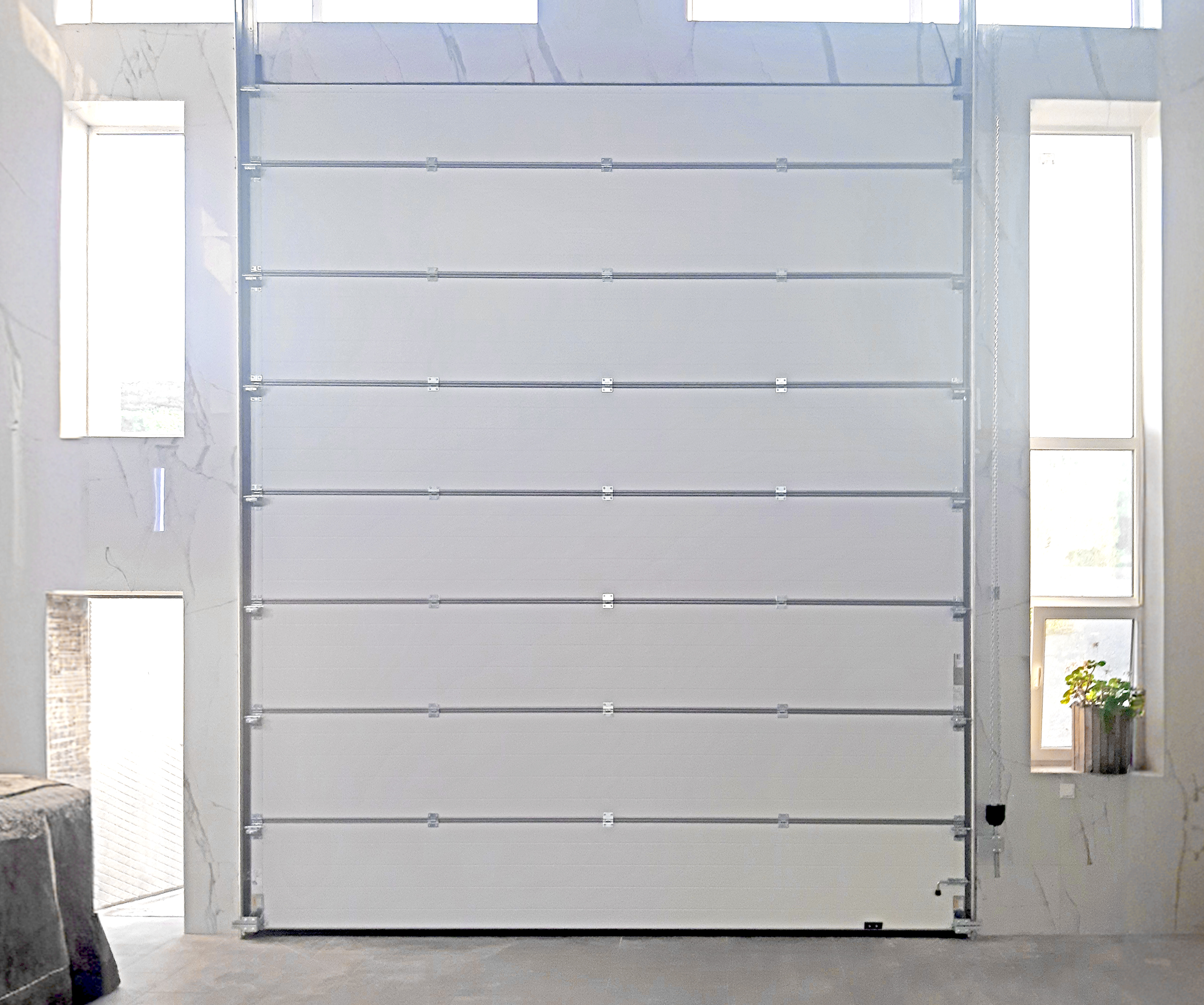 В случаях, когда на предприятии необходимо компенсировать высоту перемычки, если текущей недостаточно, есть возможность установить фальш панель для промышленных ворот.